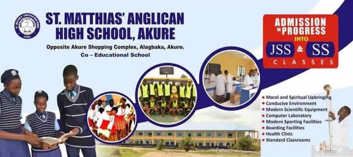 We are pleased to announce that admission is now open for the 2025/2026 academic session at St. Matthias Anglican High School, Alagbaka, Akure! Our school is committed to providing quality education and holistic development for all students.